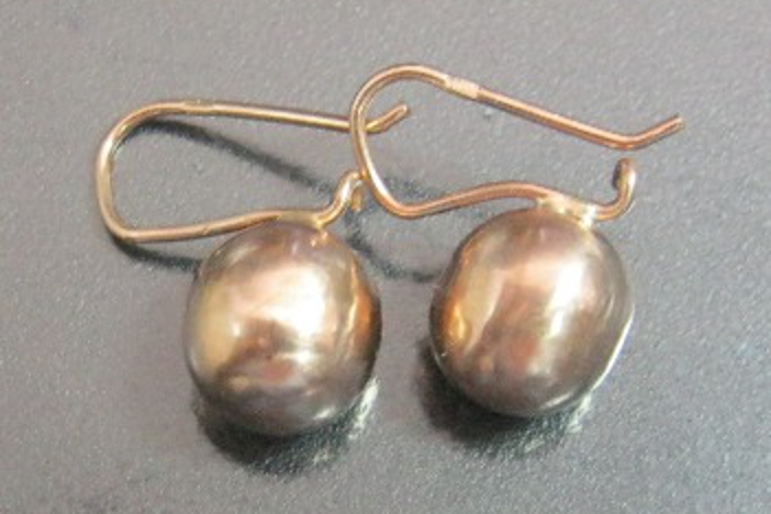 № 38 Пара женских серег в виде шариков, вес от 5 до 6,50 граммов, внешняя часть серьги (шар) состоит из золота 585 пробы,