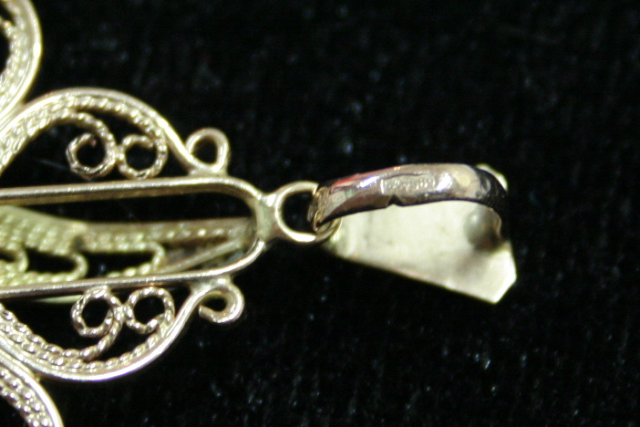 колечко для цепочки — золотые. Остальное — металл с напылением. Чистая масса золота — 0,56 грамма.